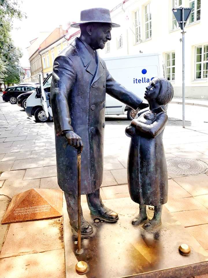 Прогулюючись вулицями Вільнюса можна побачити скульптуру – старий єврей стоїть поруч з дівчинкою, що тримає кошеня на руках. Старий мудрий єврей з тростиною, в капелюсі і пальто дивиться з такою турботою і любов’ю на дитину, так може дивитися тільки люблячий дідусь. Поруч табличка литовською мовою.