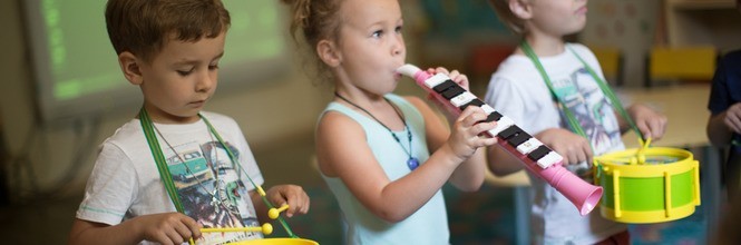 Також маленькі учні слухають навчальні аудіотексти, виконують почуті завдання, формують навички взаємодії із дорослими викладачами. Важлива частина занять проводиться у разі музичним методикам, що викликає в дітей віком емоційний підйом і розвиває вокальні здібності. У цьому етапі діти вчаться розрізняти тон звуків (низький, високий), характер музичних творів, реагують зміну музичних творів. Також викладач присвячує частину заняття навчанню описувати прослухану музику словами.